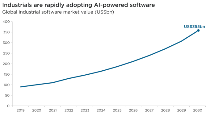 According to one estimate, AI adoption is expected to drive a doubling in the size of the global industrial software market by 2030.10