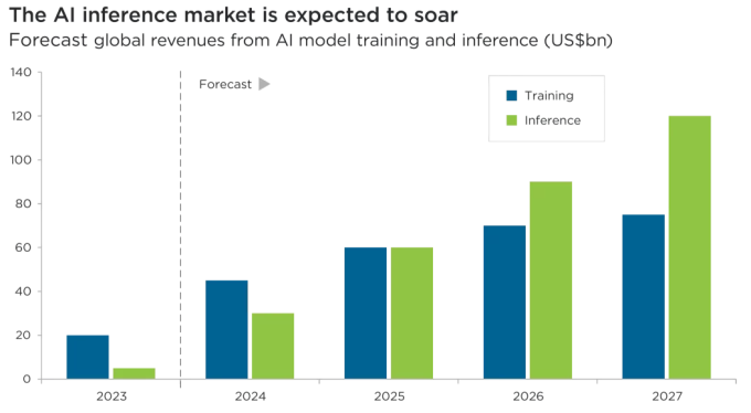 Within the AI industry, a shift in focus is underway from training to inference.2 According to BofA Global Research forecasts, global revenues from AI model inference will overtake those from model training in 2026.3 Growing inference capabilities open the door to business-critical use cases with strict latency and reliability requirements.