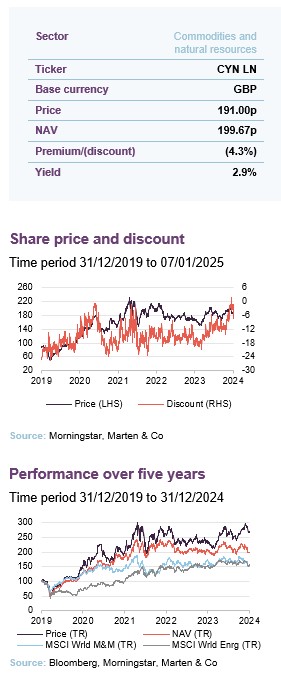 CYN aims to provide investors with capital growth and income by investing in a portfolio that predominantly comprises mining and resource equities, as well as mining, resource and industrial fixed-interest securities.