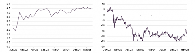 The Bank of England cut its base rate to 4.25% in May 2025, but inflation figures have been coming in higher than expected, with UK CPI running at 3.6% and RPI (which is still used to inflate renewable energy subsidies) coming in at 4.4% in June. We could still see another interest rate cut in August, but until inflation is looking better-controlled, more aggressive rate-cutting seems unlikely.