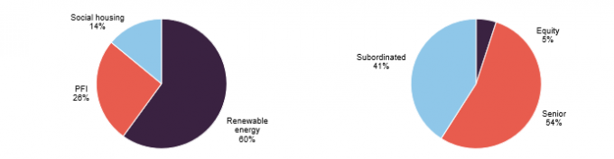 In terms of the sector split shown in Figure 5, renewables have fallen in favour of the other two sectors (as the pie shrinks). The portfolio also has slightly more exposure to senior loans and less exposure to equity or equity like positions.