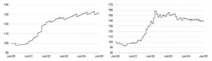 As we highlighted on the front page, GCP is working on a £150m capital cycling programme as part of its efforts to tackle its discount. Money freed up is being used to reduce GCP’s leverage. Drawings on the revolving credit facility (RCF) totalled £43m at end June 2025, down from £57m at end September 2024.