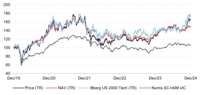 Despite the unwelcome distraction of Saba’s antics, HRI generated decent returns over 2024, with several of its holdings reporting triple-digit returns. In part, this reflects HRI’s exposure to the themes of artificial intelligence (AI)-based services or their critical infrastructure. HRI’s share price has also benefitted from the recent narrowing of its share price discount to net asset value (NAV).