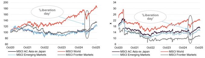 Fast-forward to today, and much has changed. The US dollar has weakened – a clear objective of the current US administration – and China is recovering, aided by renewed domestic policy support (the government has spent billions on measures such as subsidies, higher wages, and discounts to try and stimulate the domestic economy) and booming exports (some of which, ironically, has been spending brought forward to build inventories in the hope of beating tariffs) that has helped offset weak domestic spending. However, while geopolitical uncertainties continue to persist, PHI’s managers observe that most Asian markets have appeared resilient in the face of the tariff storm.