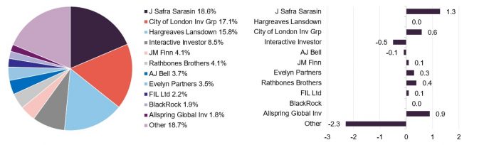 Figure 15 illustrates that PHI has a significant retail presence within its share register, reflected by the prominence of the major platforms, which account for over 40%. Wealth managers are also a significant element, accounting for over 20%. Since we last published, J. Safra Sarasin, a Swiss private bank that has a strong focus on sustainability, has continued to add to its position.