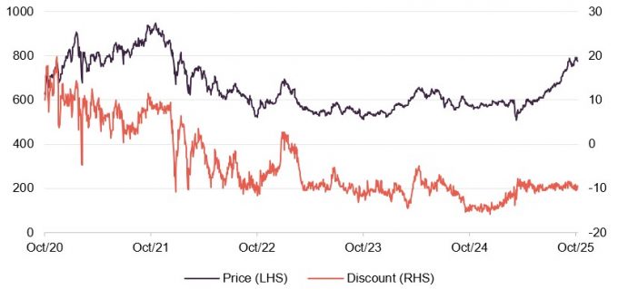 For several years, PHI has used share buybacks to help reduce its discount. In April, PHI introduced a five-year performance-related tender and stated it would continue buybacks, aiming to keep the discount to net asset value (NAV) in single digits during normal market conditions. This approach has worked, with the discount averaging 9.6% since the announcement and peaking at 11.1%.