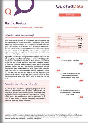 Our independent guide to quoted investment companies is an invaluable tool for anyone who wants to brush up on their knowledge of the investment companies’ sector. Please register on www.quoteddata.com if you would like it emailed to you directly.