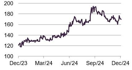 After two long years of decline, it looked like real estate would stage a recovery at the halfway point of the year. Valuations had stabilised and the much-anticipated interest rate cutting cycle was underway. However, October’s budget put paid to any recovery as fears rose that the chancellor’s tax raid would prove to be inflationary – sending gilt yields back up to levels not seen since the ill-fated days of Liz Truss’s premiership. The budget’s impact on sentiment towards the real estate is illustrated perfectly in the 2024 performance graph on the right.