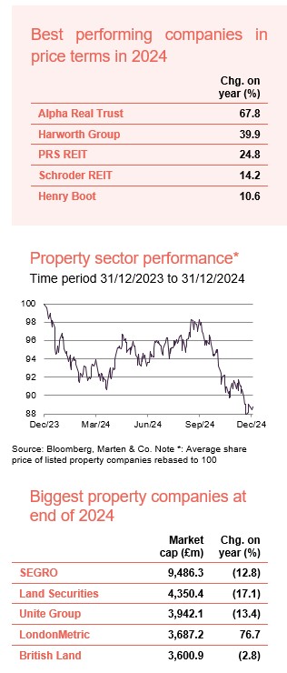 The best-performing company that was not a result of some form of corporate action was Harworth Group. The developer and logistics owner saw its share price gain almost 40% as its strategy to grow to a £1bn company gathered momentum. Profitable sales of development land (not least a £100m+ sale to Microsoft – see top news stories section for details), land values being marked up, and new logistics developments coming through all combined to great effect.