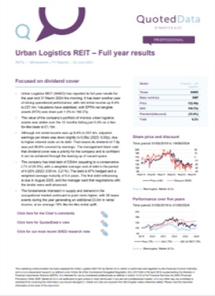 A result analysis note on Urban Logistics REIT (SHED). The company reported resilient performance in a rising interest rate environment, with its focus on growing earnings to provide dividend cover.