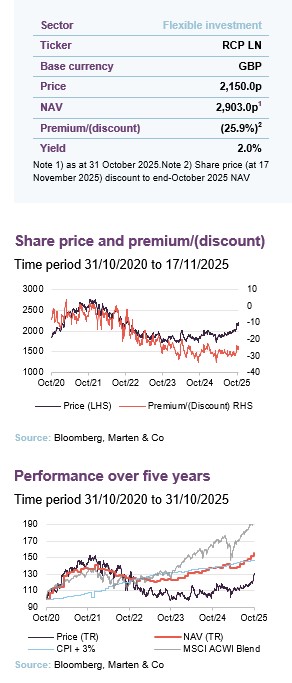 High-conviction thematic exposure in its more concentrated quoted equities pillar continues to play out with good results from China and Japan, as well as European defence and aerospace. Meanwhile, its uncorrelated strategies portfolio provides a layer of diversification and downside protection. As diversification comes back into focus across markets, RIT’s multi-asset structure positions it to benefit from a renewed appetite for broader exposure.