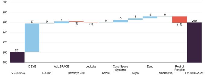 Within the portfolio, value growth continues across both private and listed holdings, helped by realisations from Astroscale, AST, Arqit, and Spire Global. Proceeds have been reinvested into new private opportunities more closely aligned with defence demand.